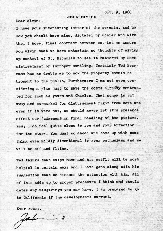 - Letter between Boretz and John Dimick about "The Legend of St. Nicholas"