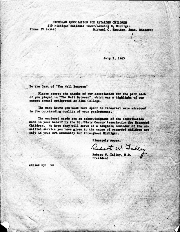 Letters Praising "The Wall Between" Play