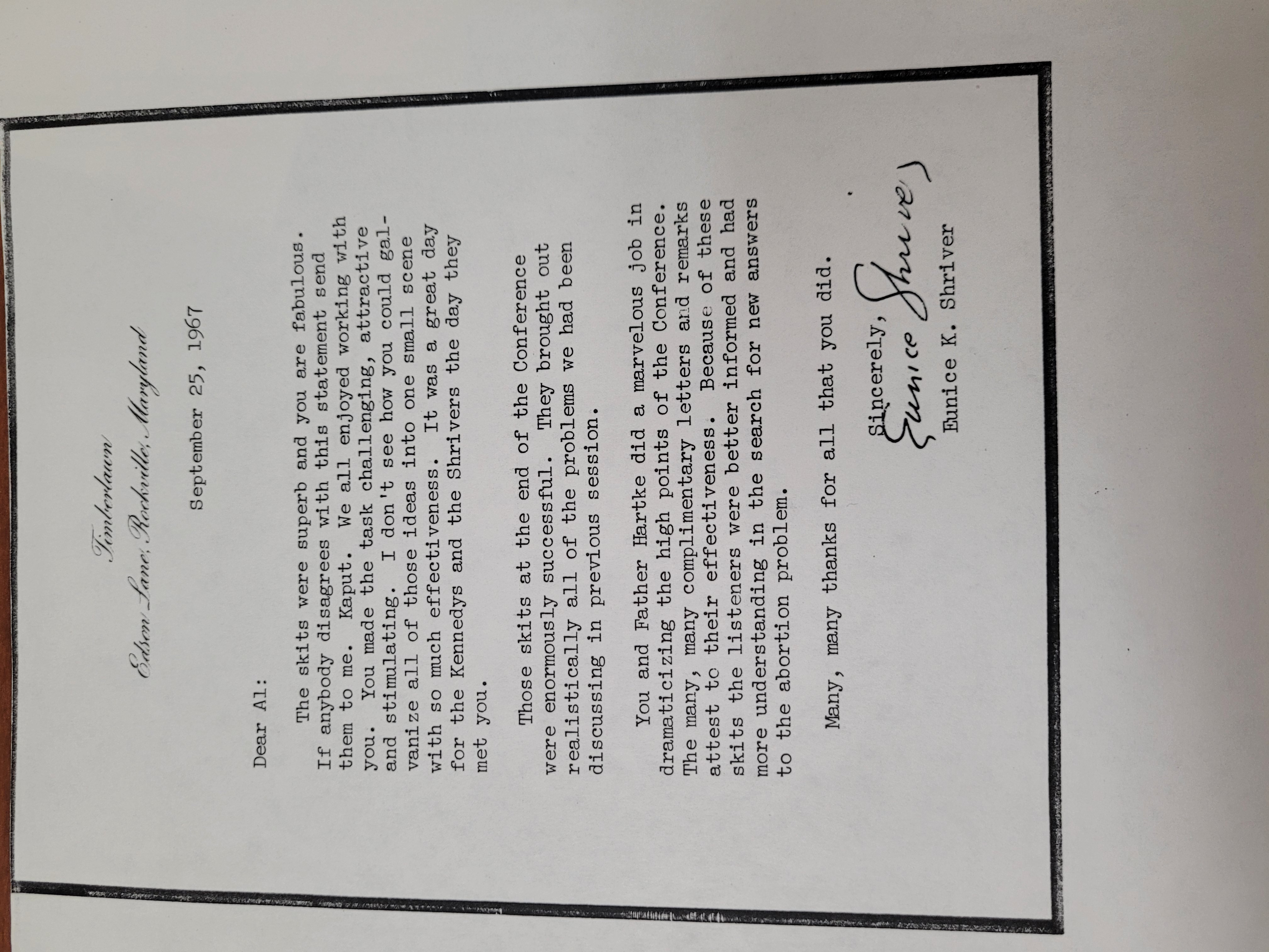 Letter from Eunice Shriver
