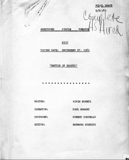Armstrong Circle Theater "Battle of Hearts" (front page)