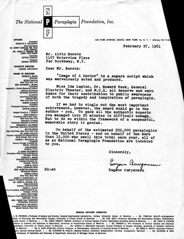 Letter Praising "Images of a Doctor" from the NFP (National Paraplegia Foundation)