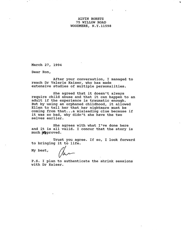 Letter from Boretz on Child Psychology