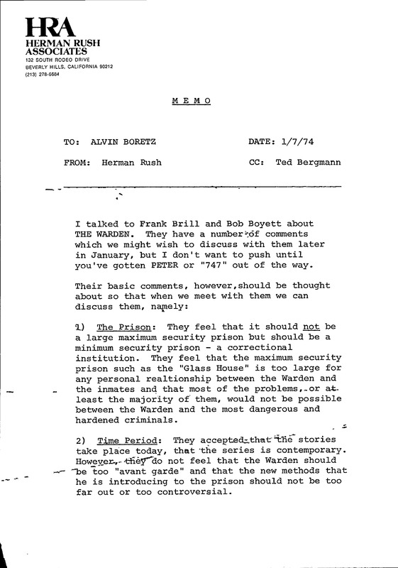Letter on "The Warden" Research from Herman Rush