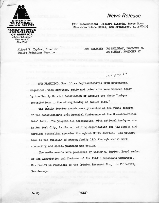 Letter from Family Services Association