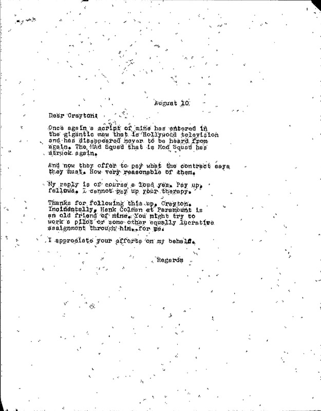 Letters Between Boretz and Crayton Smith on "The Mod Squad"