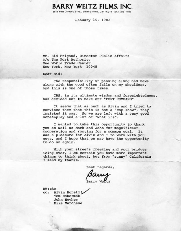 Letter from Boretz to Port Authority Offices