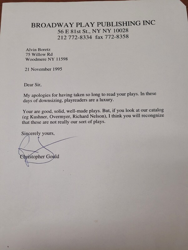 Rejection Letter from Broadway Play Publishing