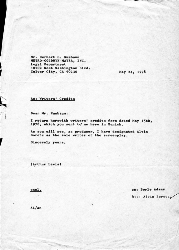 Letter on Writing Credits from Arthur Lewis
