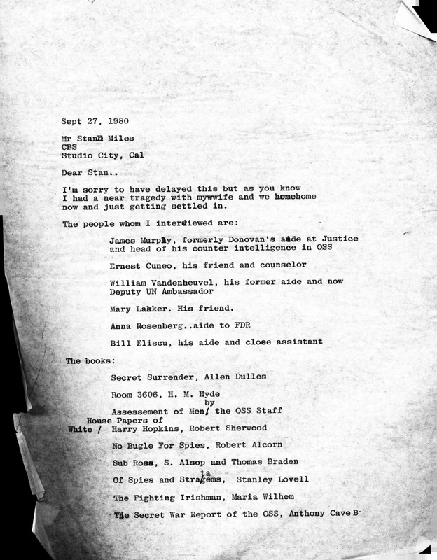 Letter on Interviews for Wild Bill Story