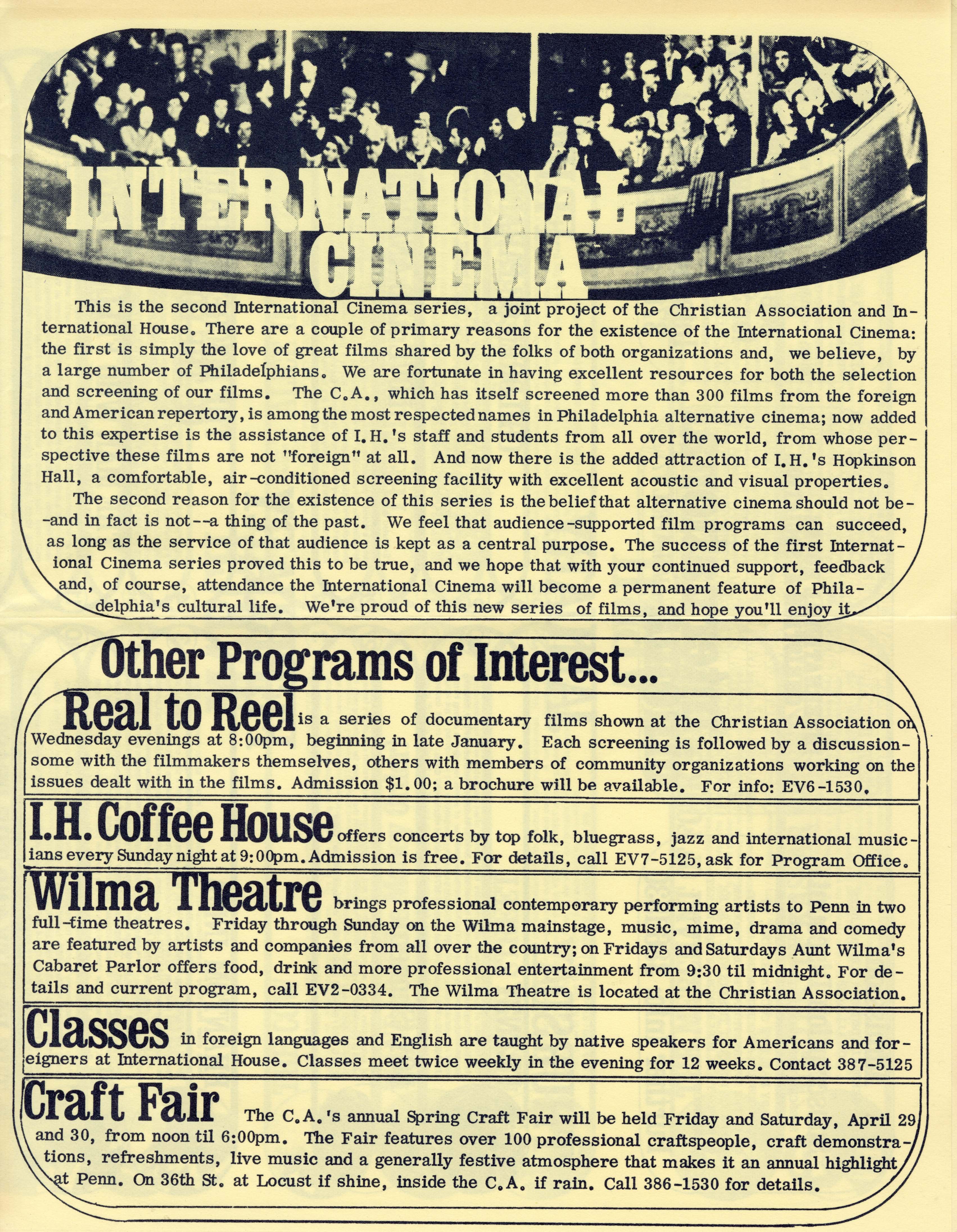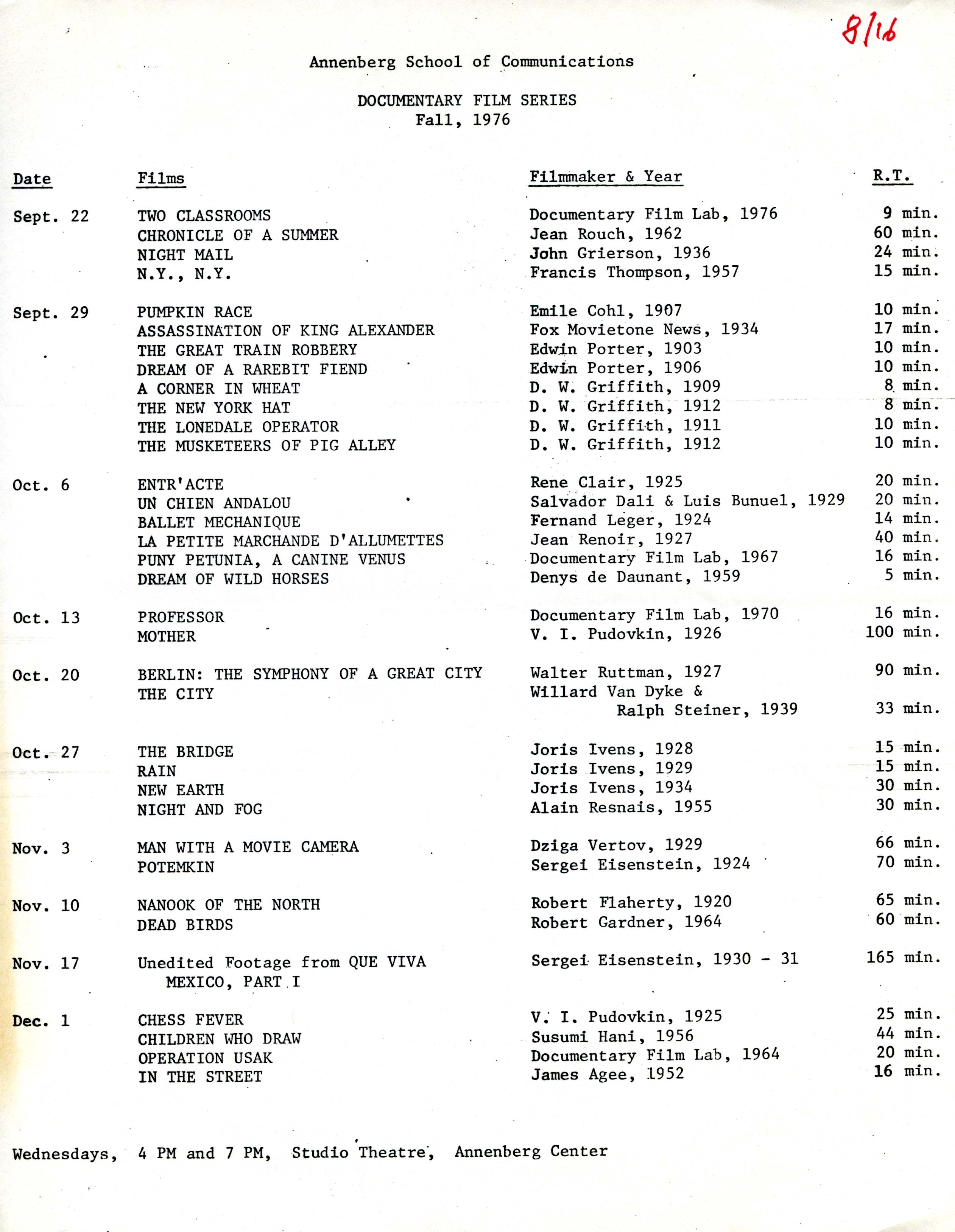 Documentary Film Series schedule, Annenberg School of Communications (1976)