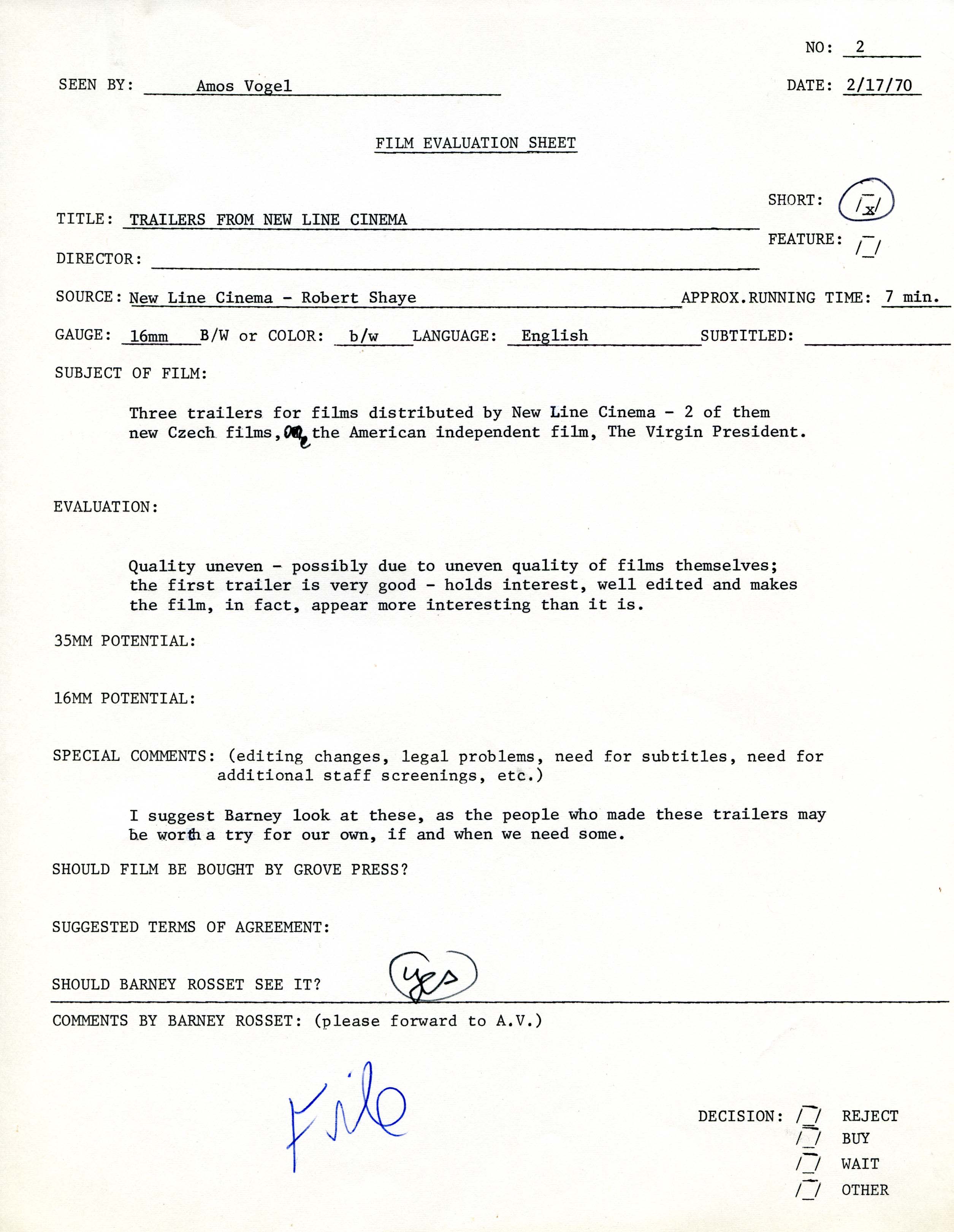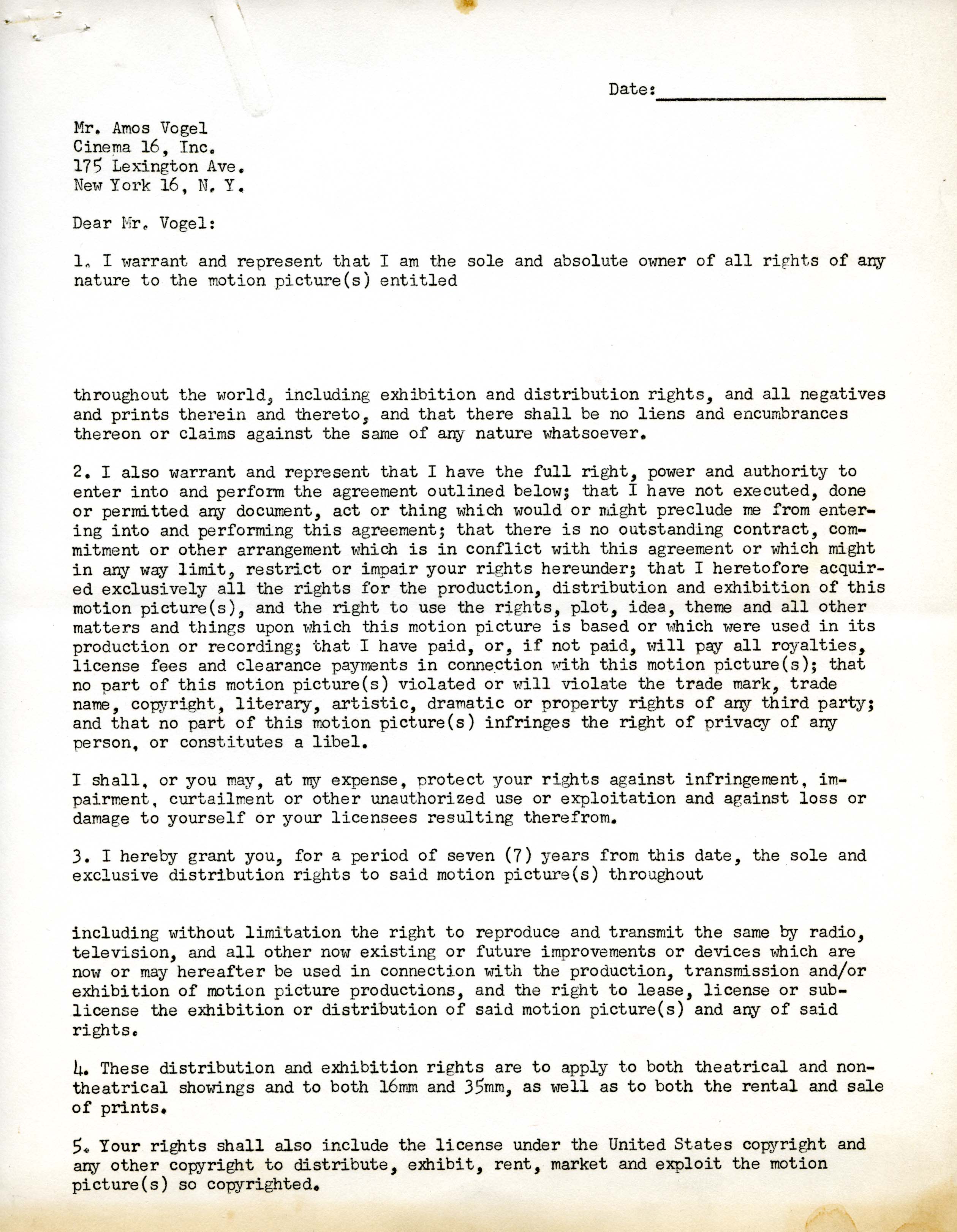 USSR Film Week proposal, Lincoln Center (December 30, 1964)