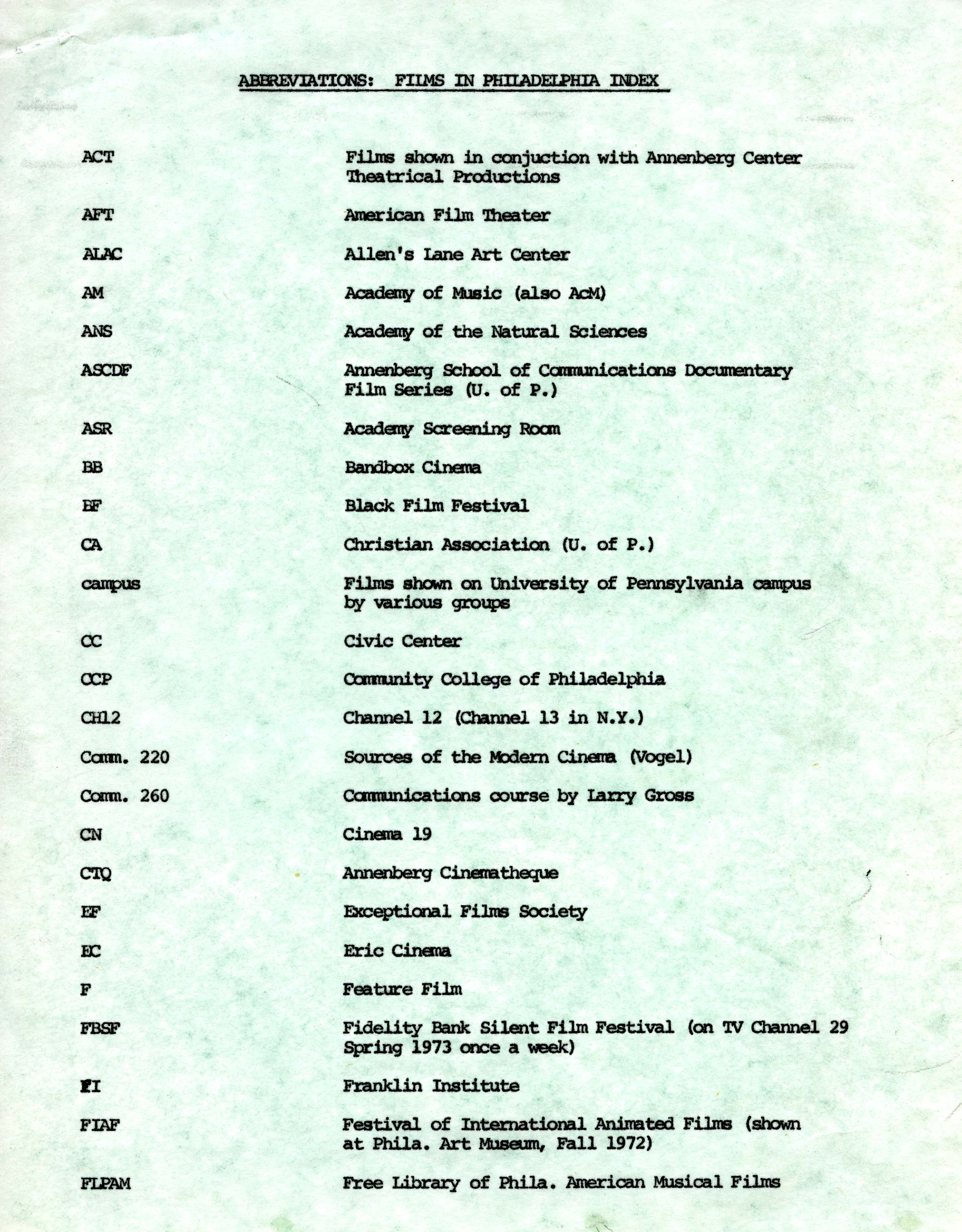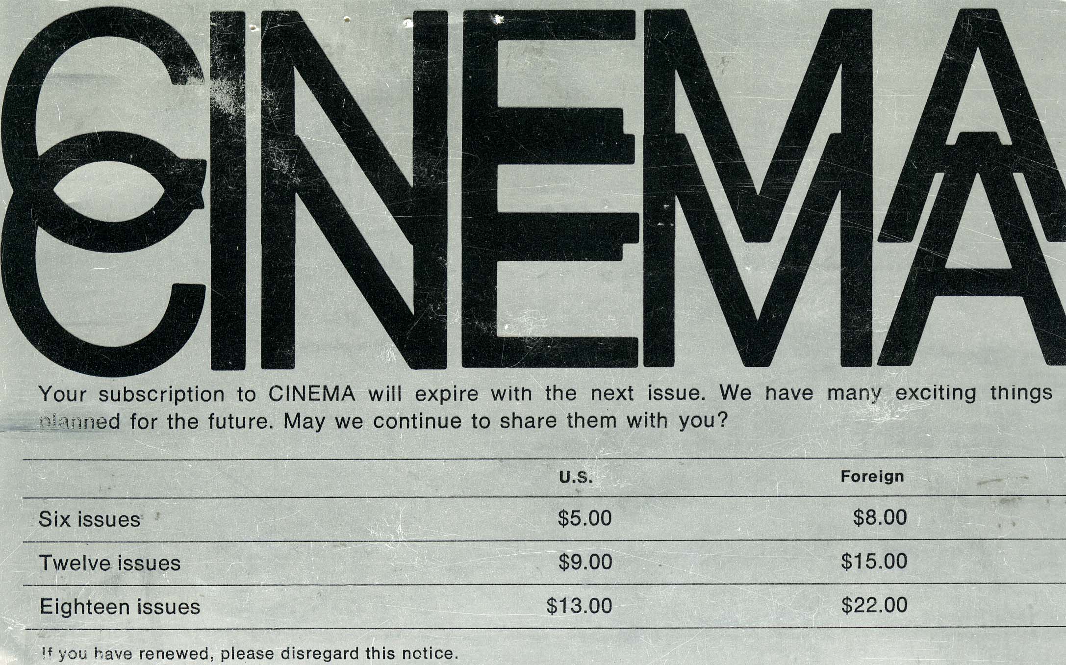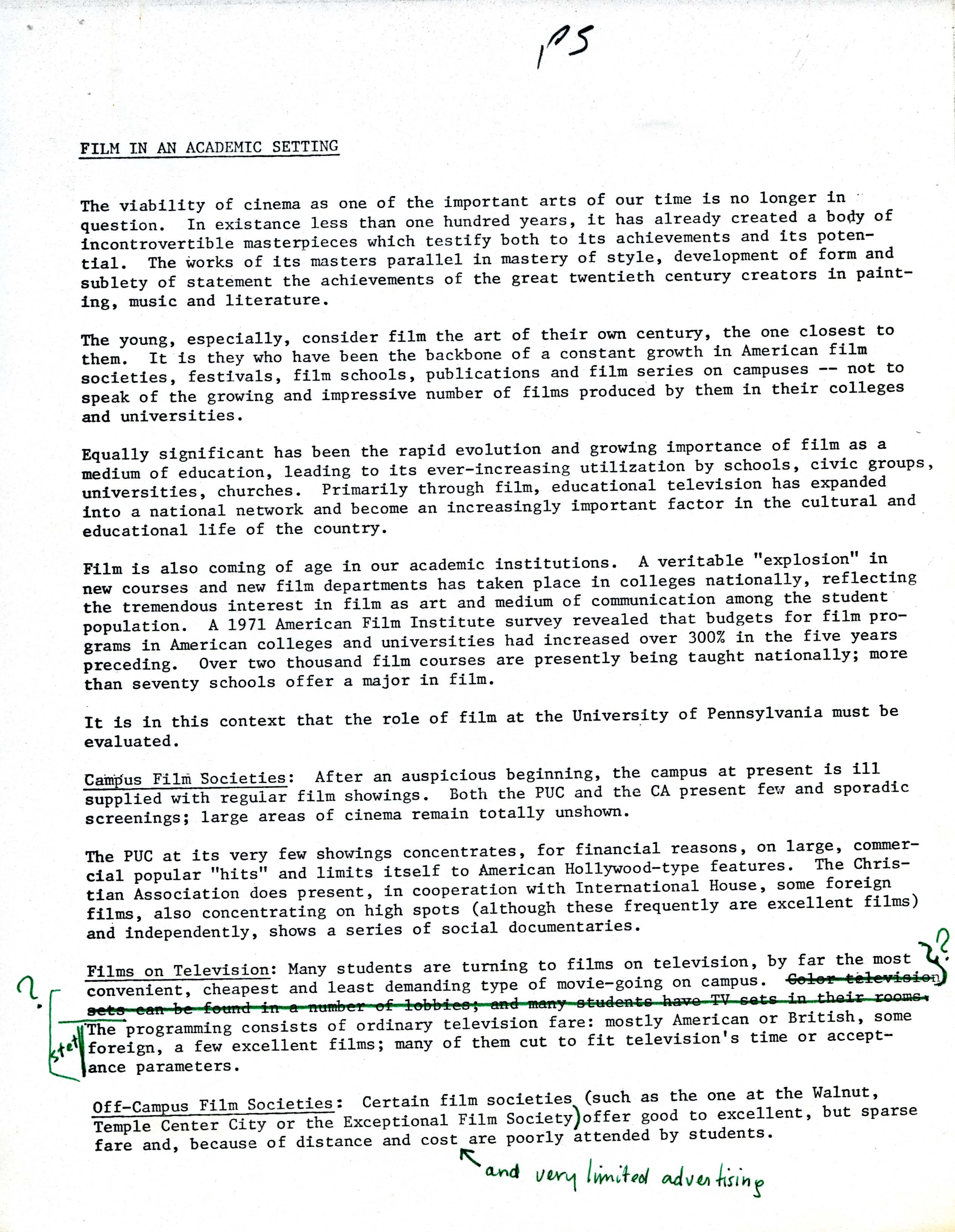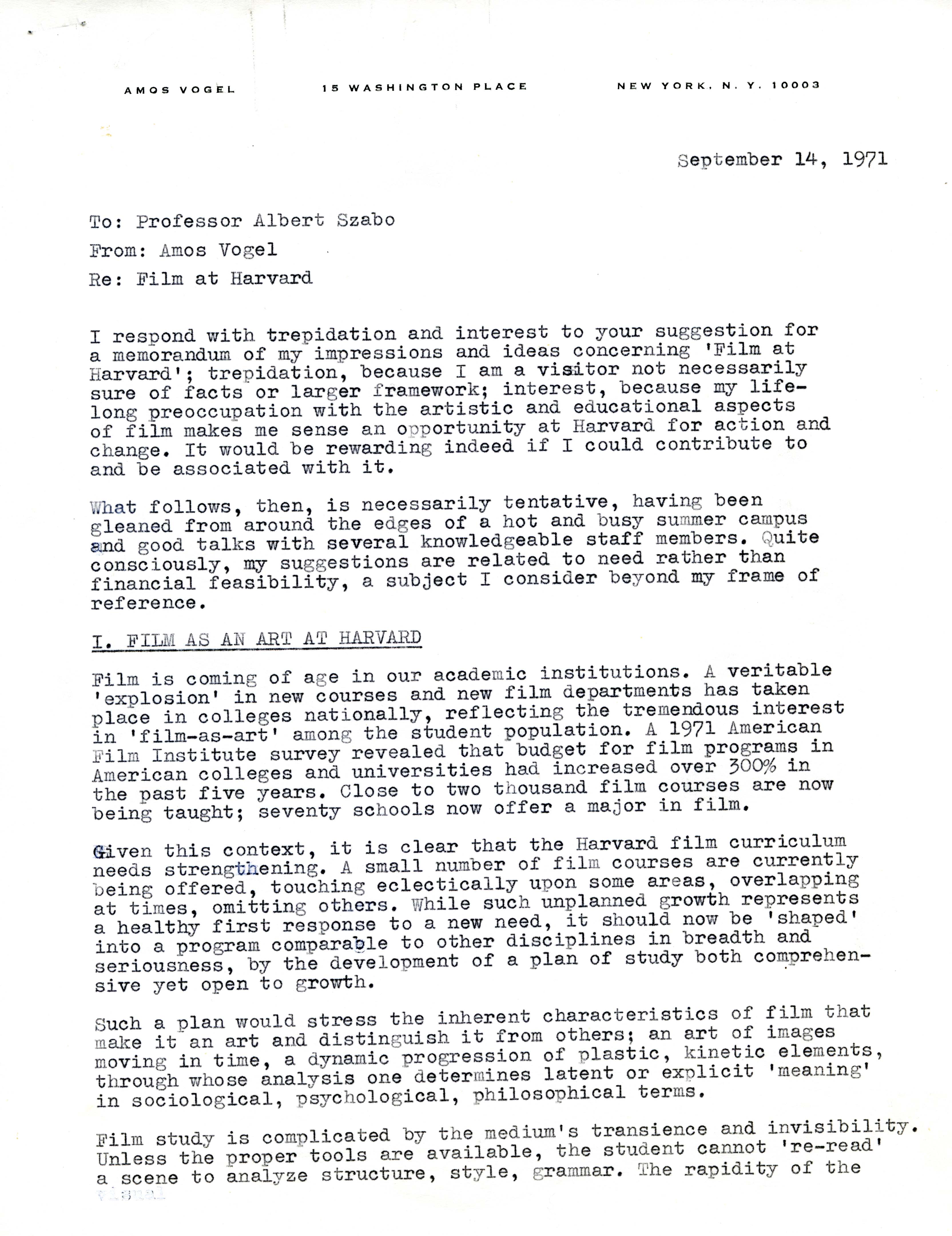 "Source of the Modern Cinema," Harvard course outline (1971)