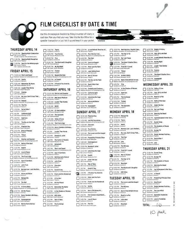 Wisconsin Film Festival, First Look Event checklist (2016)