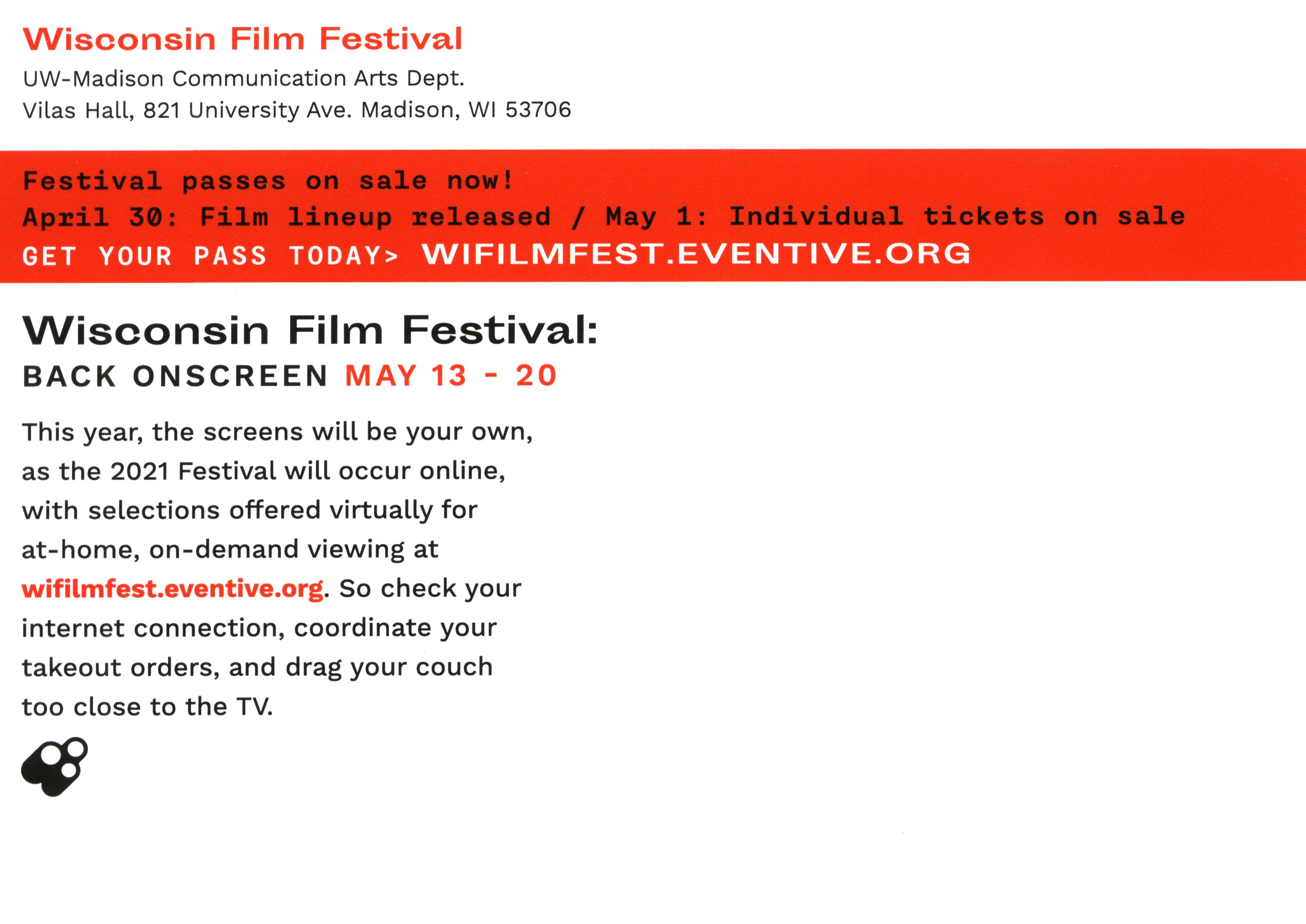 Wisconsin Film Festival promo card (2021), front