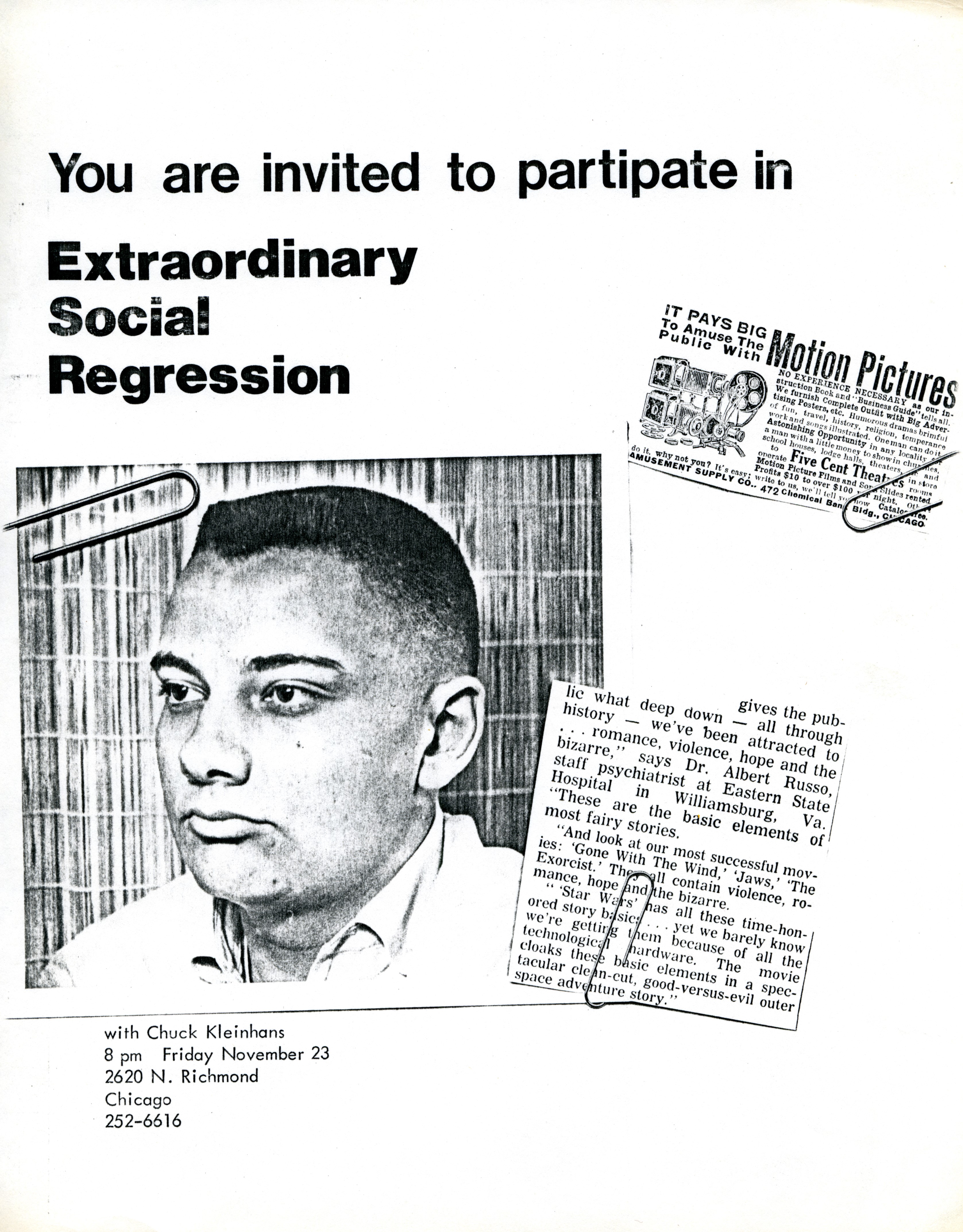 Extraordinary Social Regression screening flyer (undated)