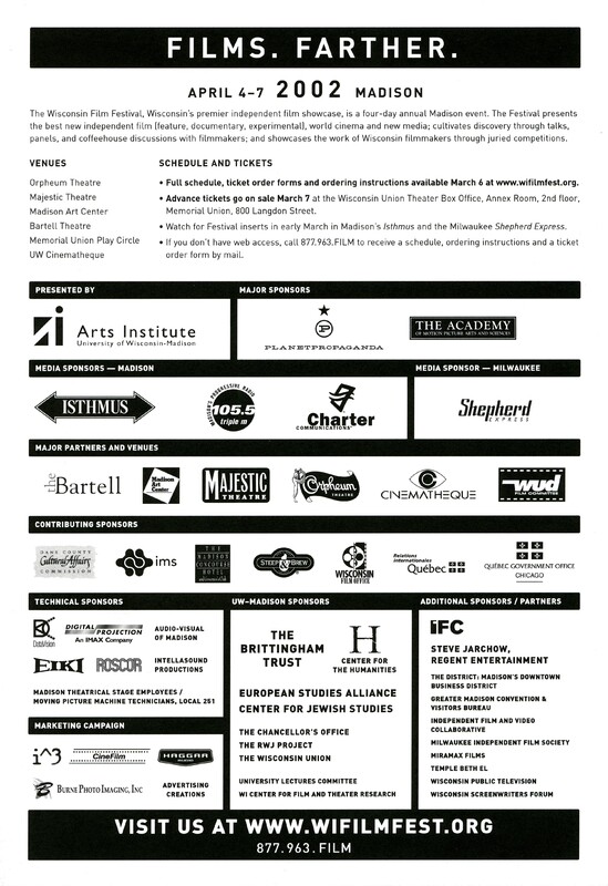 Wisconsin Film Festival flyer, back (2002) (2 of 2)