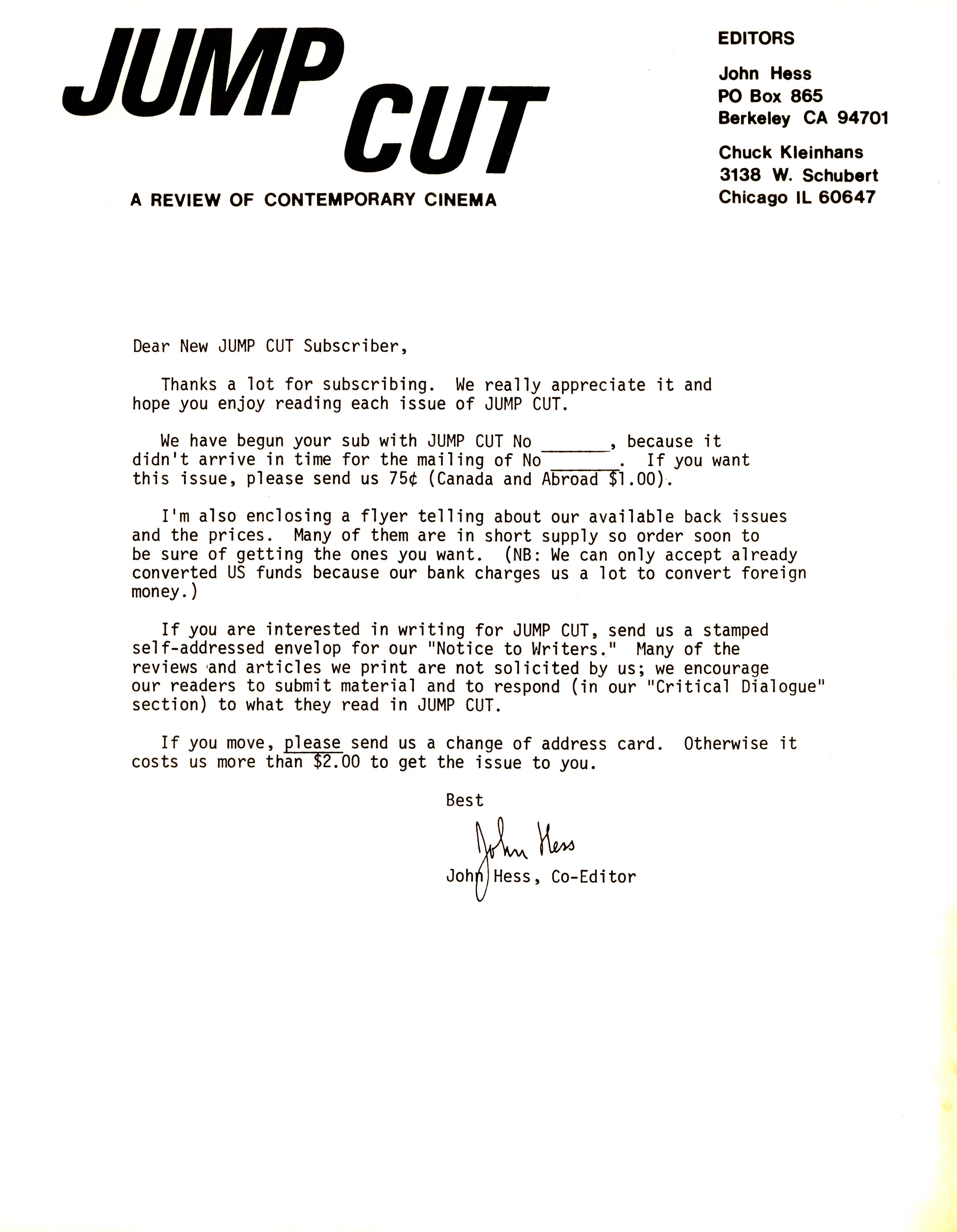 Chuck Kleinhans and Julia Lesage/Jump Cut