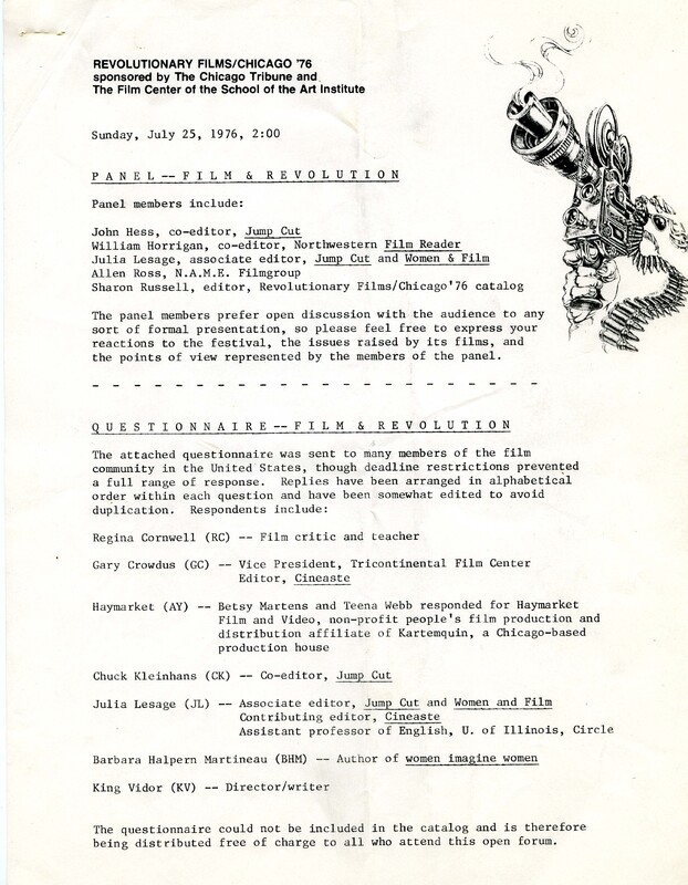 Revolutionary Films/Chicago '76 questionnaire (July 25, 1976)