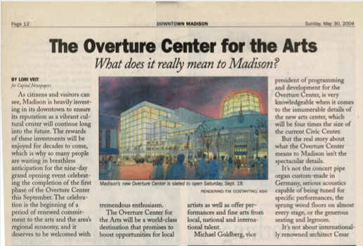 Overture Center's Opening (Wisconsin State Journal 2004)