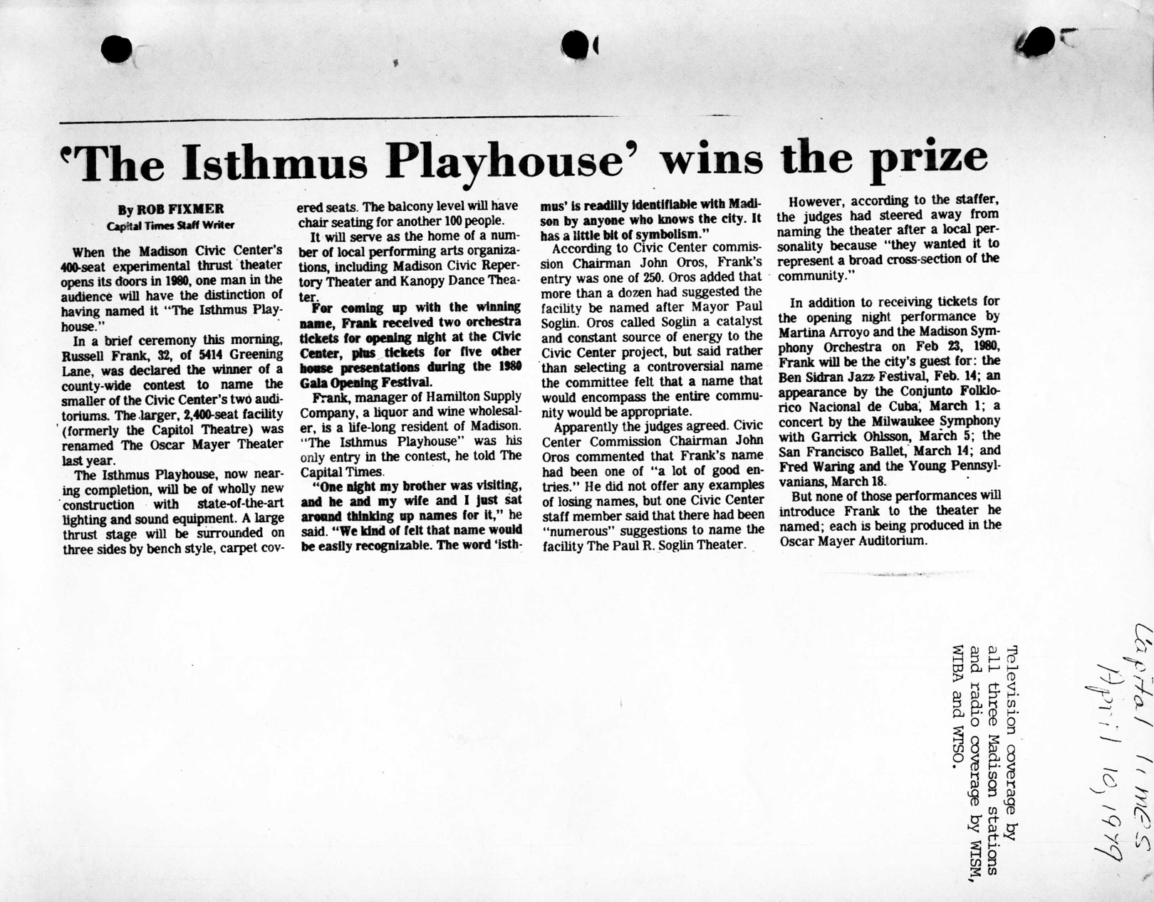MCC's Name the Theater Contest Results (Capitol Times 1979)