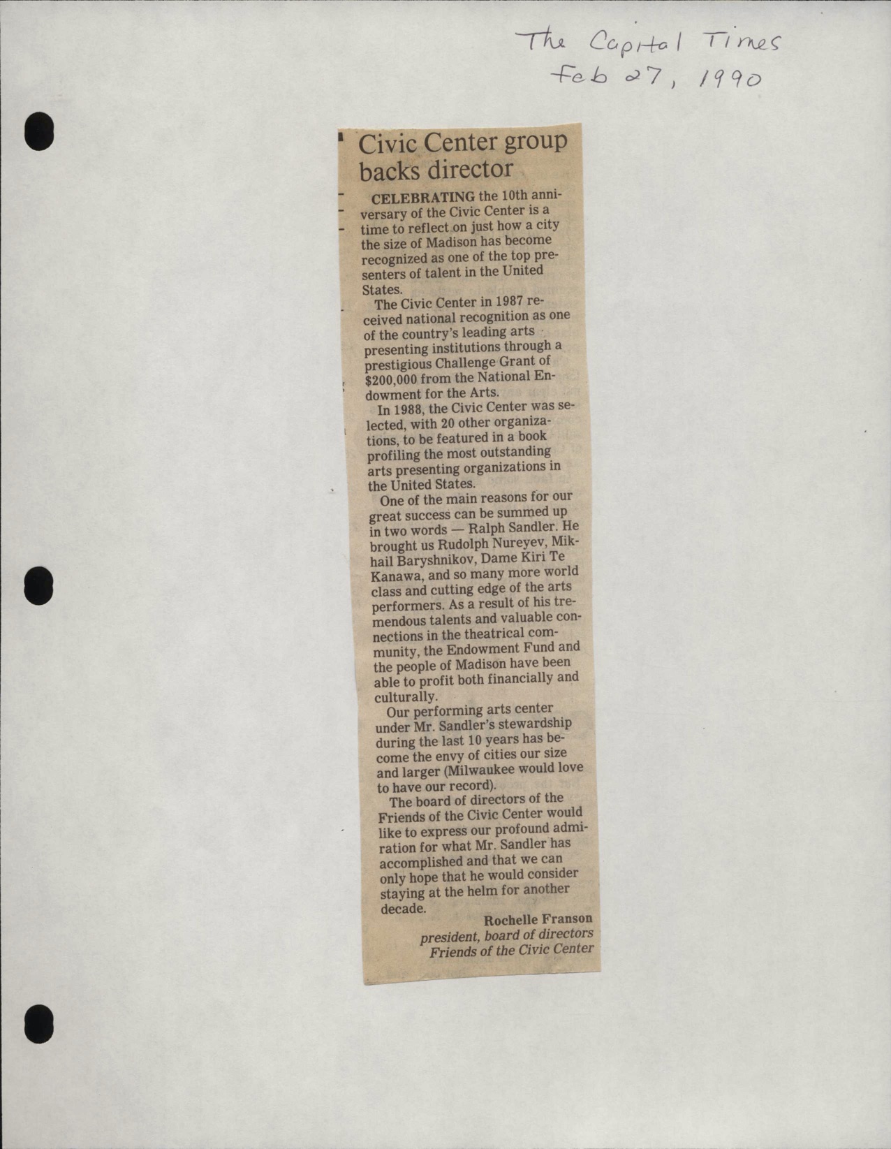 Sandler backed by MCC's Grou (Capitol Times 1990)