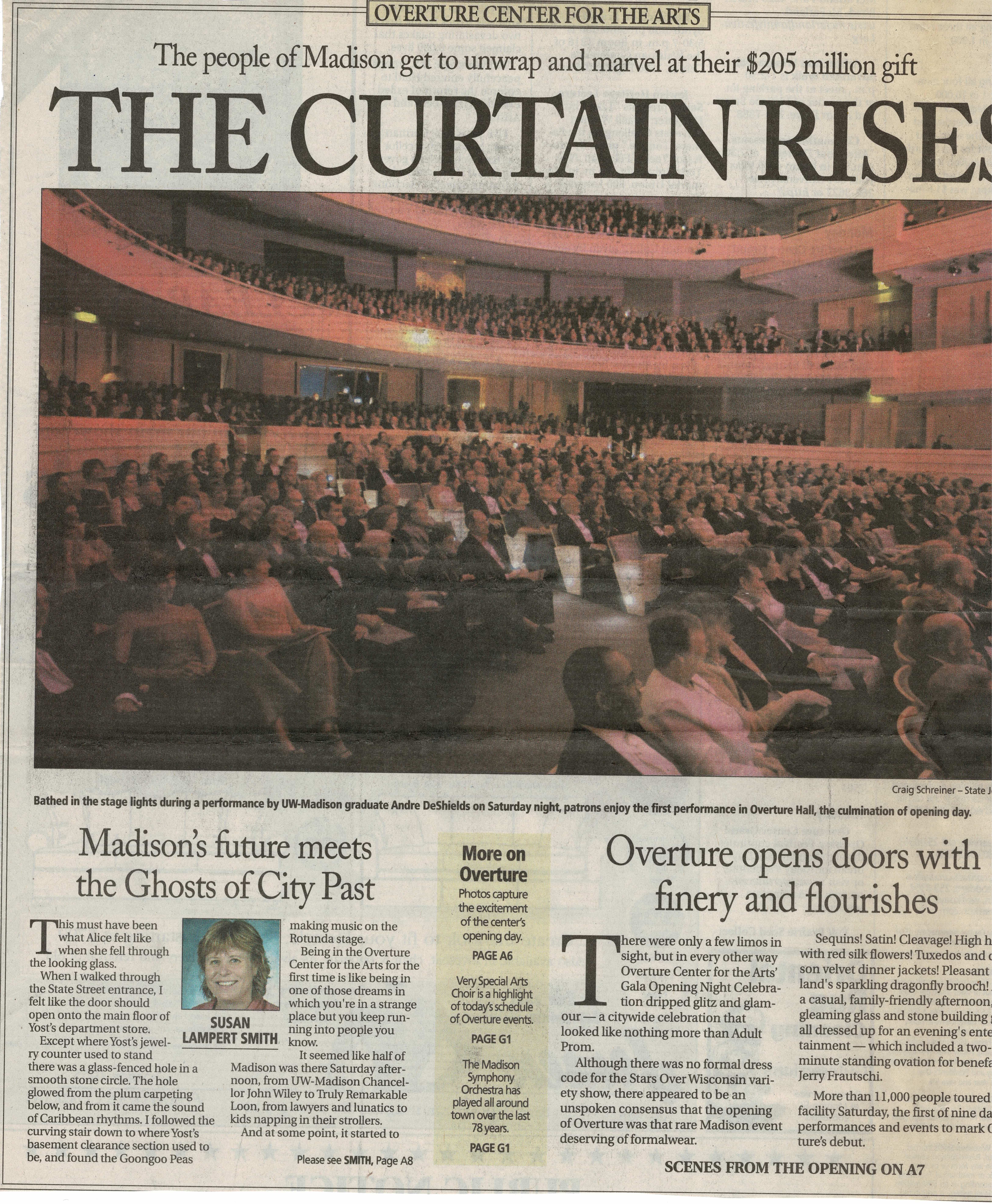 - Wisconsin State Journal on Overture Center's Opening (2004)