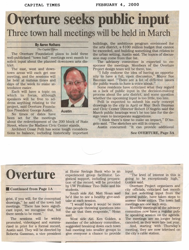 - Overture Center Committee Wants Public Input (Capitol Times - 2000)