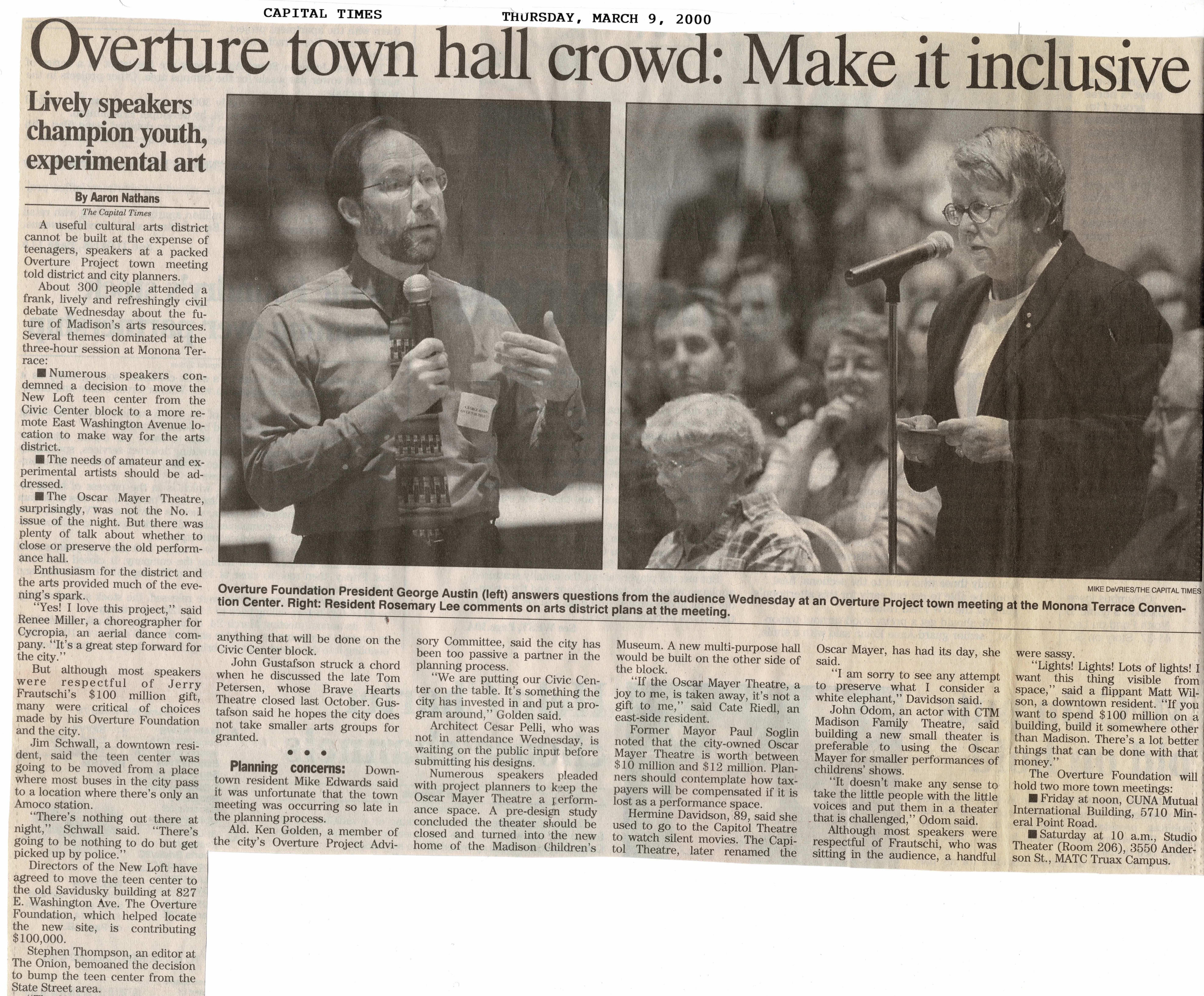 - Overture Center Town Hall Meeting (Capitol Times - 2000)