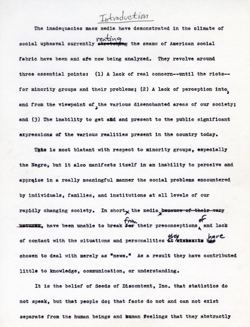 1969 correspondence and other documents relating to the radio series Seeds of Discontent and the non-profit organization of the same name.