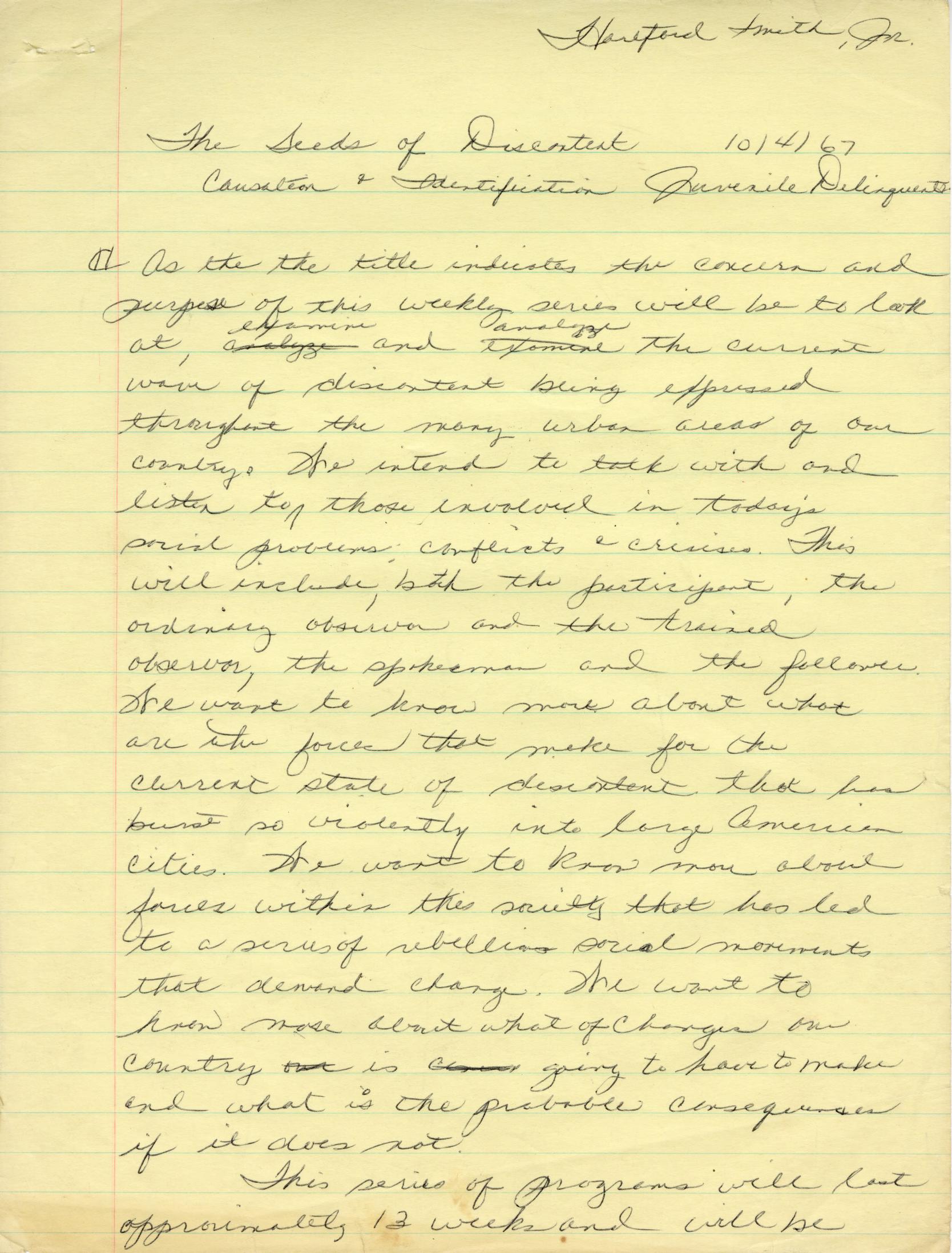 - Correspondence, writing, and notes for Seeds of Discontent (1967-1968, undated)