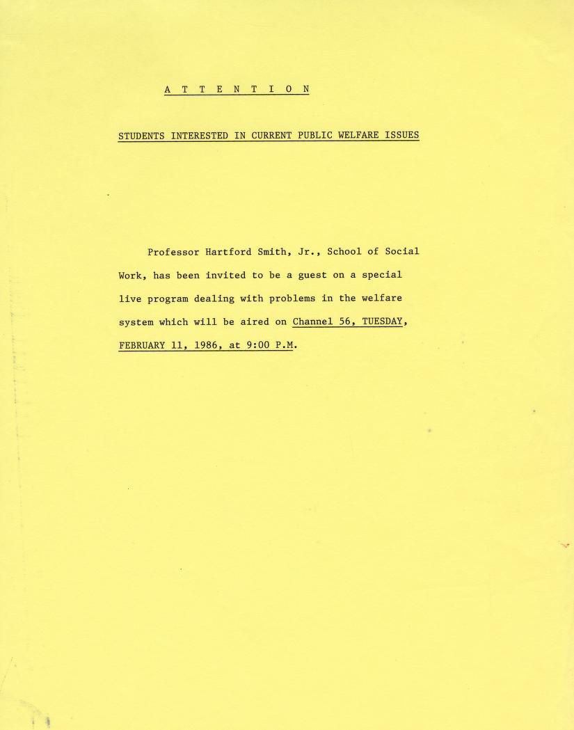 Correspondence related to Hartford Smith Jr.'s media appearances, where he typically provided a social work perspective in local Detroit media.