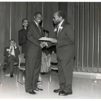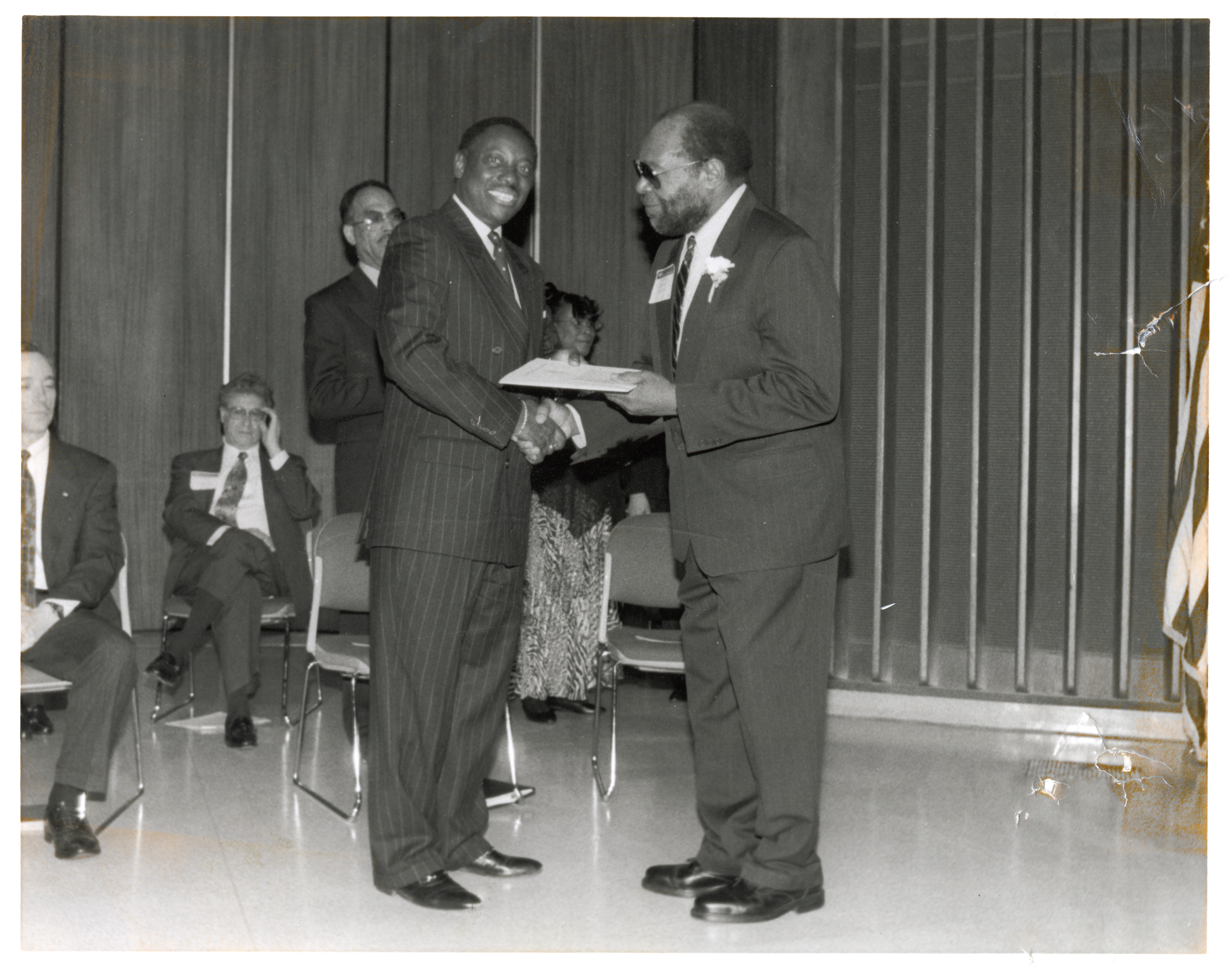 Photograph of Hartford Smith Jr. receiving an award at Wayne State University